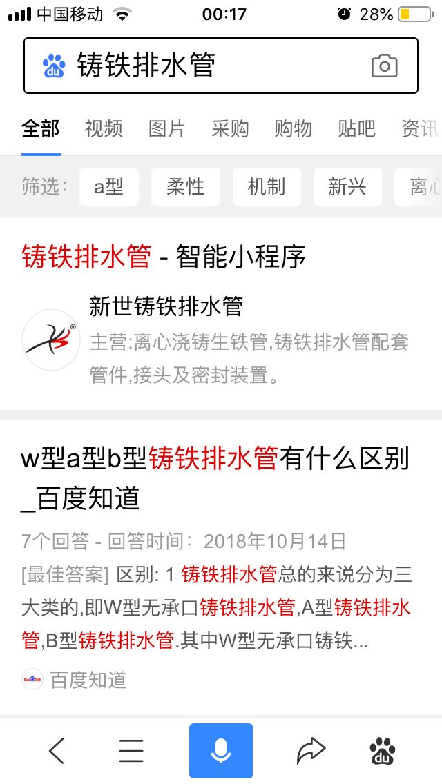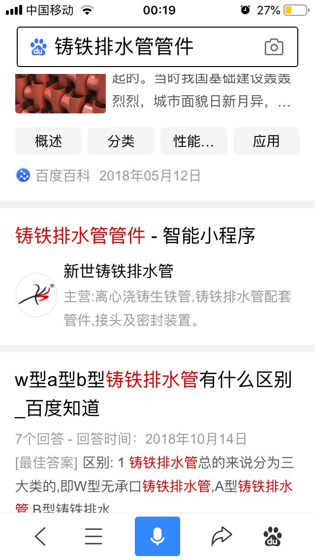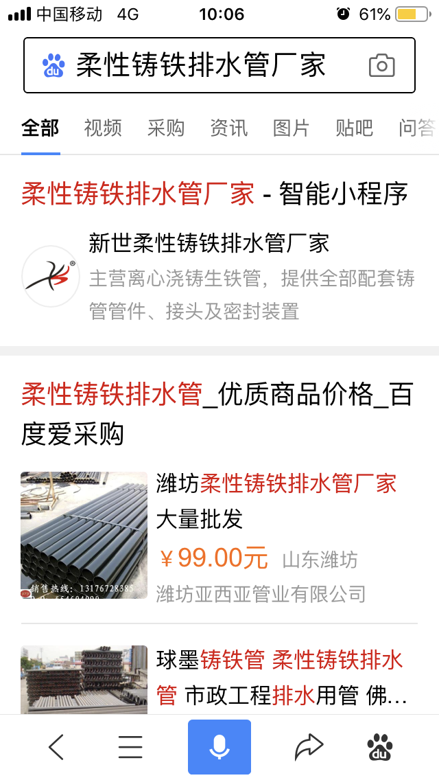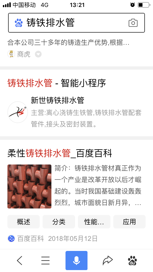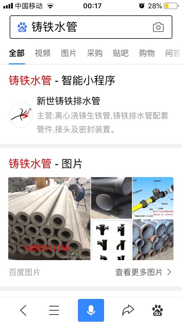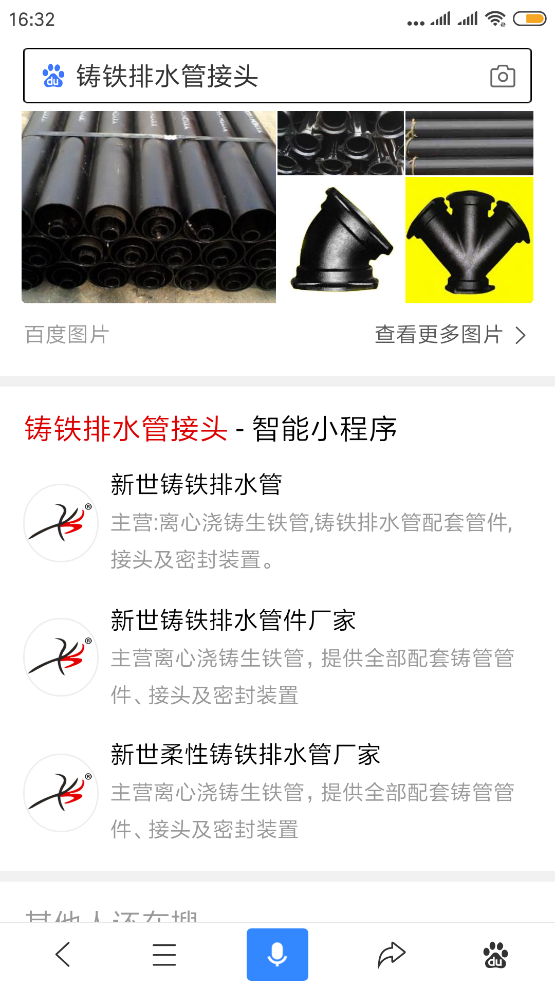 百度小程序:新世鑄鐵排水管、新世柔性鑄鐵管廠家、新世柔性鑄鐵排水管廠家、新世環(huán)氧鑄鐵管廠家、新世鑄鐵管件廠家、新世環(huán)氧排水管廠家、新世環(huán)氧樹(shù)脂鑄鐵管廠家、新世鑄鐵排水管件廠家