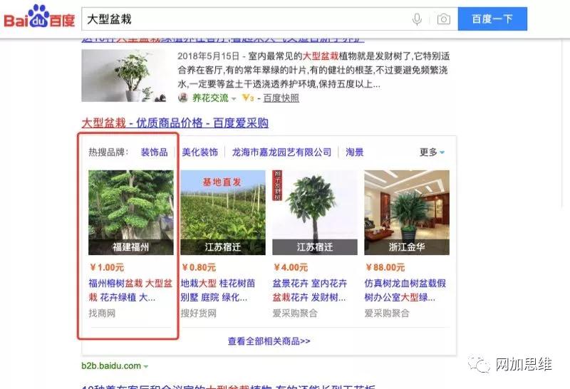 最近,百度推出了其B2B垂直搜索引擎平臺(tái):百度愛采購(gòu)。如果你細(xì)心的話,搜索相關(guān)關(guān)鍵詞,會(huì)在第一頁(yè)發(fā)現(xiàn)百度愛采購(gòu)。其主要在搜索頁(yè)面結(jié)果端,是以商品列表的形式展現(xiàn)出來(lái)4個(gè),之后點(diǎn)擊進(jìn)去就會(huì)到達(dá)相關(guān)的列表頁(yè),可查看更多相關(guān)的產(chǎn)品。